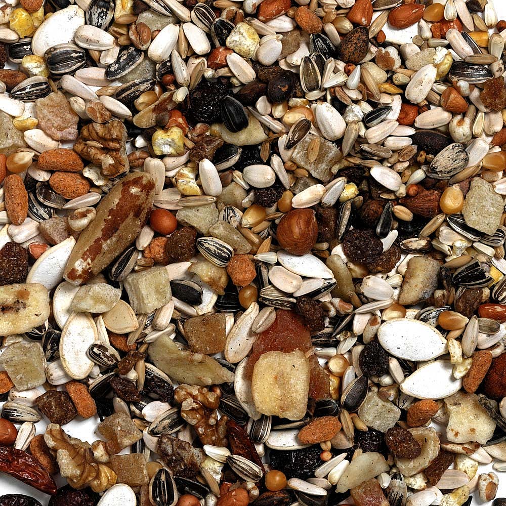 Seeds, Fruit (min. 35% mix of Dried Banana, Raisins, Rosehip, Papaya, Apricot, Pineapple), Grains, Nuts, Vegetables
